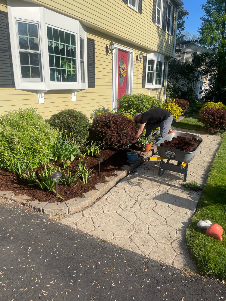 This is was a challenging mulching project because it has such a high density of plants. Everything has to be spread by hand for the most part. There is not enough room to get a rake in without damaging the plants.